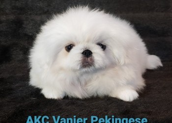 Pretty white female with lots of fluff. Miss tabbitha is a calm soul. Vaccinations are up to date. Please fill out the application under the heading "Procedures" for consideration. There are no breeding rights on Vanier Pekingese. $500. deposit to hold, balance due upon pick up in Argyle.